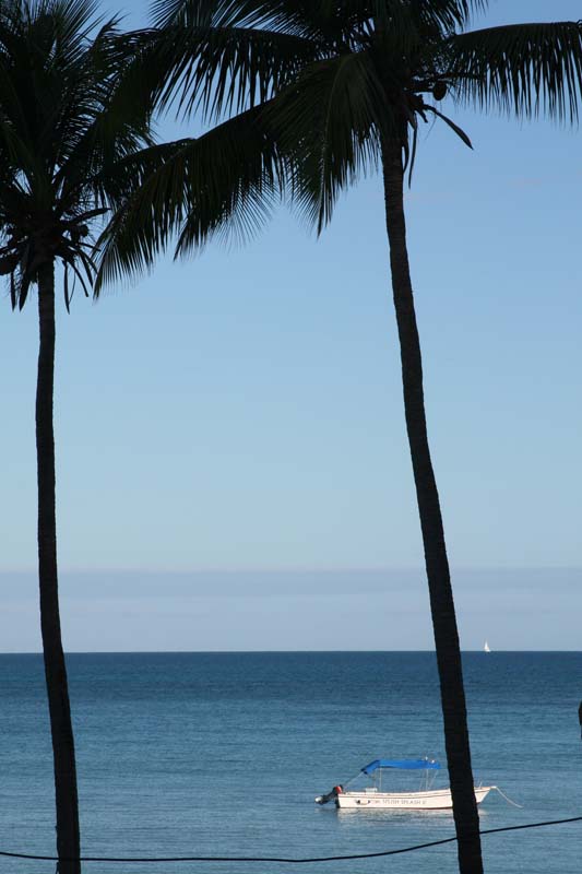 The next morning treated us to a beautiful cloudless day. Note the little sailboat off in the distance. |